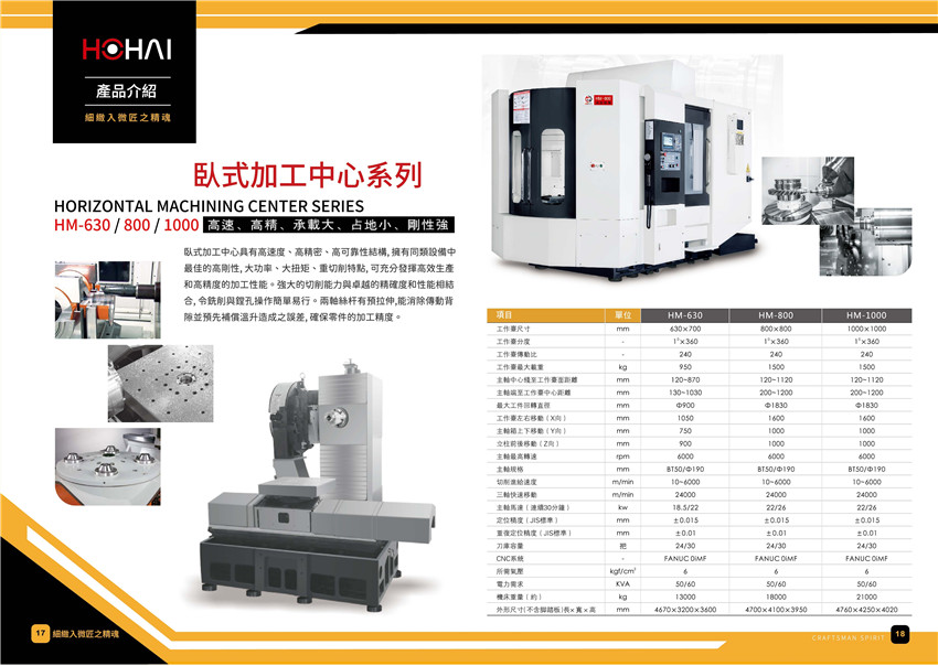 臥式加工中心係列