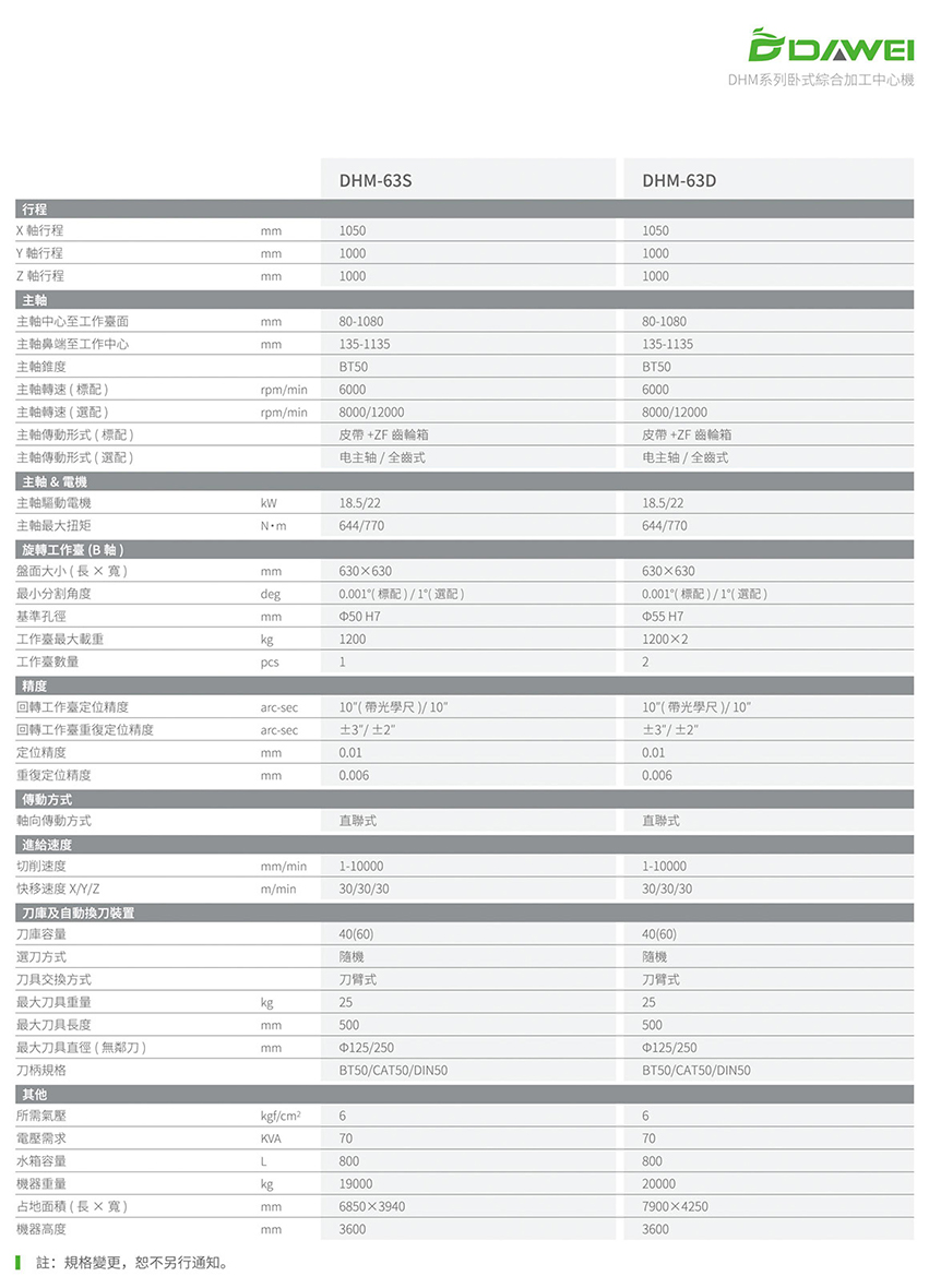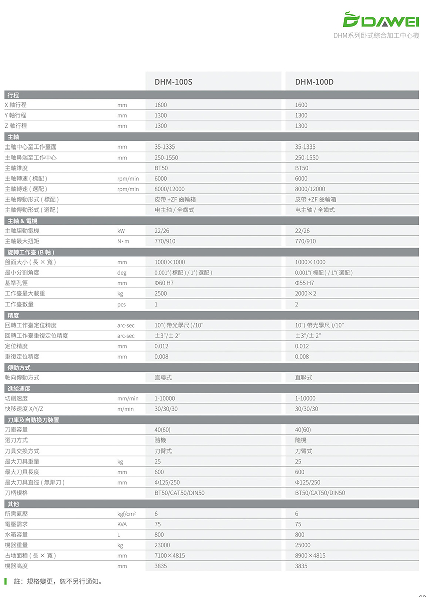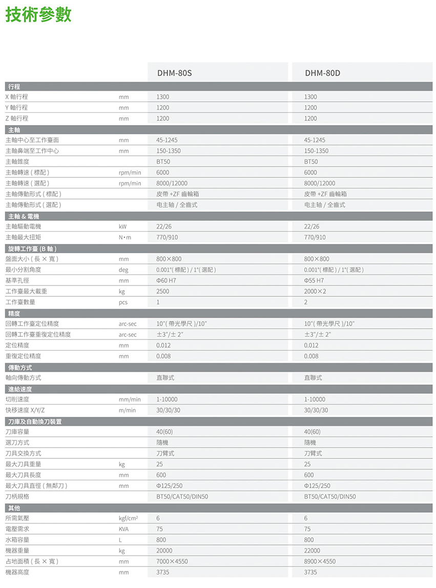 臥式加工中心係列